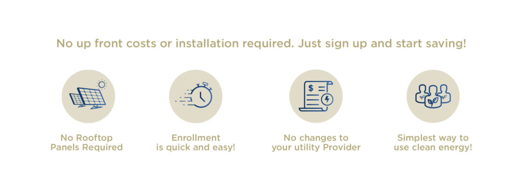 We’ll connect you with a local solar farm so you don’t have to install panels to reap the benefits and savings that come with the use of solar energy AT NO COST TO YOU!